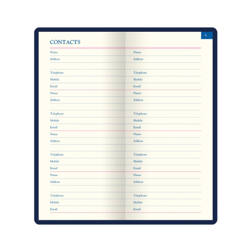 - 158 pagine per nomi, indirizzi, numeri di telefono/cellulare e indirizzi email