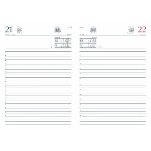 L'agenda giornaliera di dimensioni 14,5x20,5 cm è la compagna perfetta per tenere sotto controllo i tuoi impegni quotidiani. Il colore blu conferisce un tocco di eleganza e sobrietà, mentre la carta bianca da 60 gr di ottima qualità permette di scrivere comodamente tutti i tuoi appuntamenti. La stampa a 2 colori assicura una grafica chiara e leggibile in diverse lingue: italiano, inglese, francese, tedesco, spagnolo, russo. La rubrica stampata ti aiuta a gestire i contatti più importanti, mentre la copertina imbottita fornisce una protezione extra. Gli angoli quadri e il dorso tondo conferiscono un look raffinato, mentre la stampa dorata a secco e il pastello oro aggiungono un tocco di classe ed eleganza.