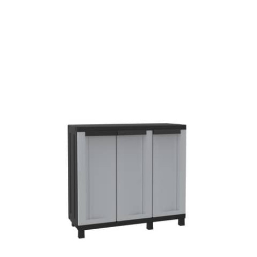 L'armadio multifunzionale a tre ante è la soluzione perfetta per tenere in ordine e organizzare i tuoi spazi. Dotato di due vani separati, offre un ampio spazio di archiviazione per tutti i tuoi oggetti. Il vano orizzontale con ripiano regolabile in plastica ti permette di organizzare gli oggetti in modo ordinato, mentre il vano verticale è ideale per riporre indumenti o oggetti più ingombranti. Le ante si aprono fino a 180° per un accesso facile e comodo. L'armadio è dotato di chiusura con lucchetto (non incluso) per garantire la sicurezza dei tuoi contenuti. Il design grigio/nero si adatta perfettamente a qualsiasi tipo di arredamento.